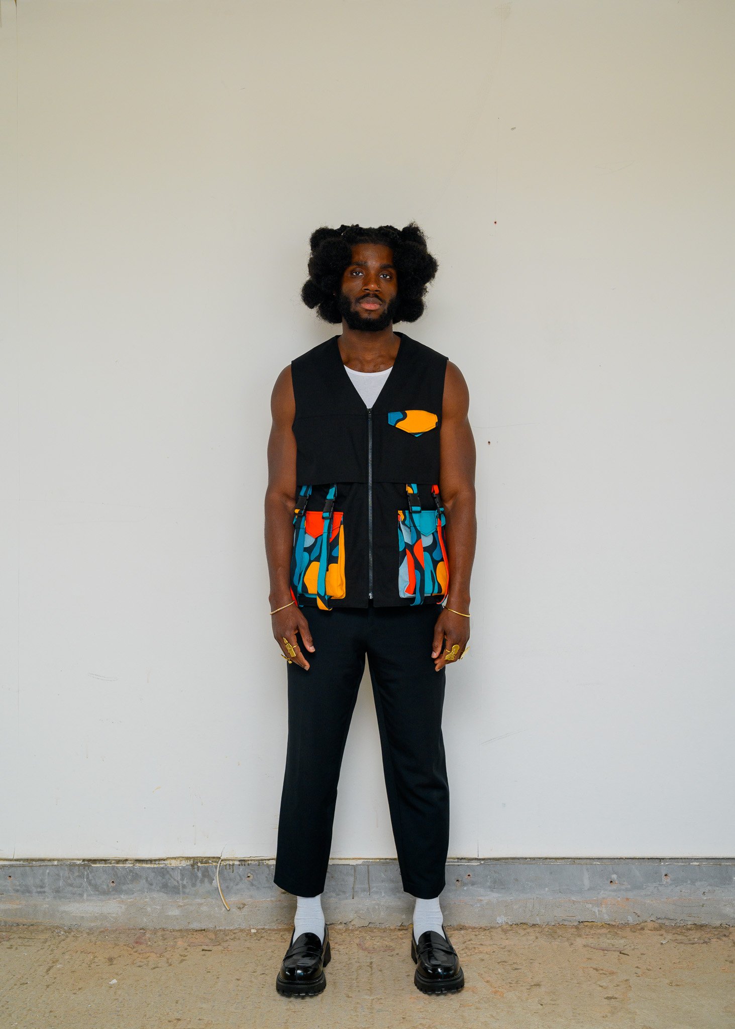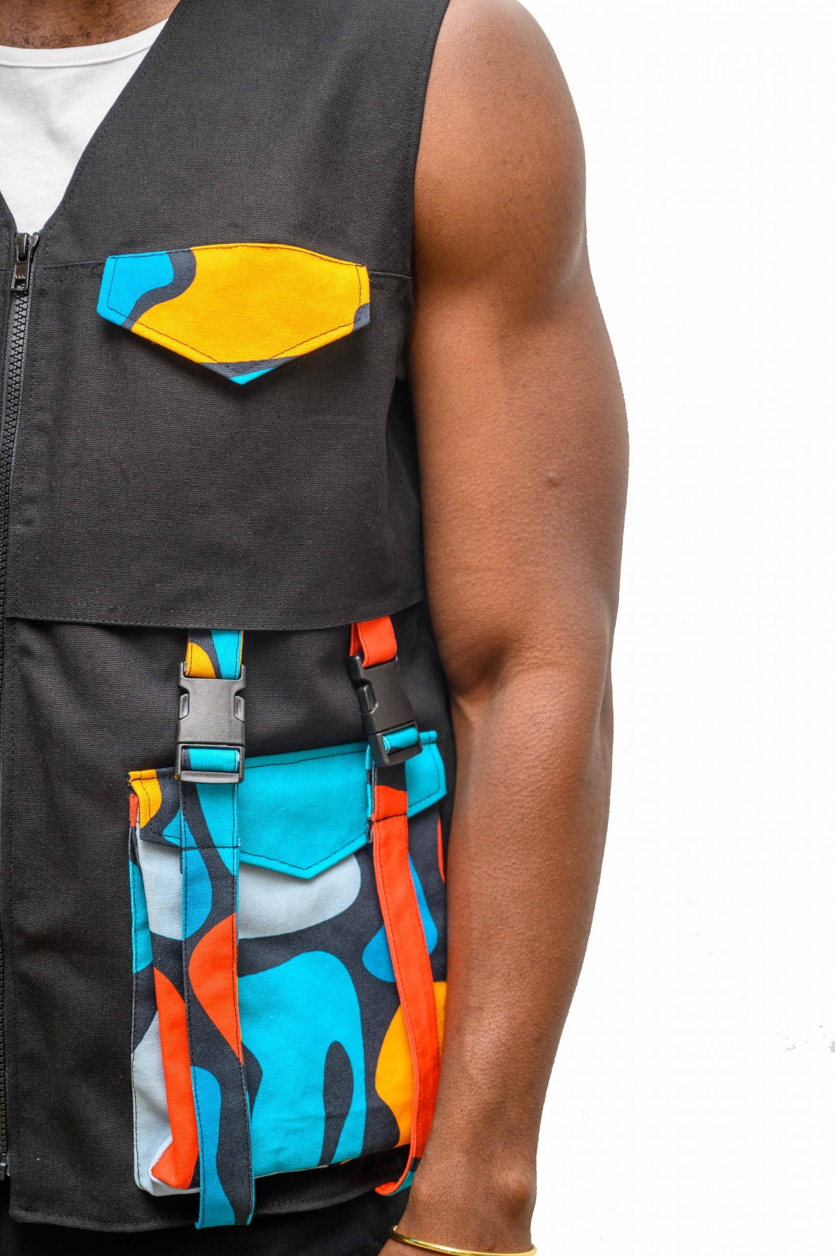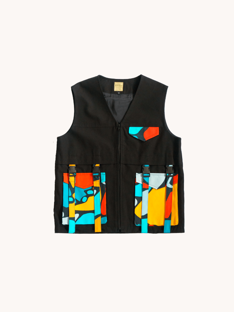 Introducing our stylish African-inspired utility vests, designed with multiple front pockets to add functionality to your wardrobe. These vests are perfect for cooler summer temperatures, keeping you warm while showcasing an African spirit.
