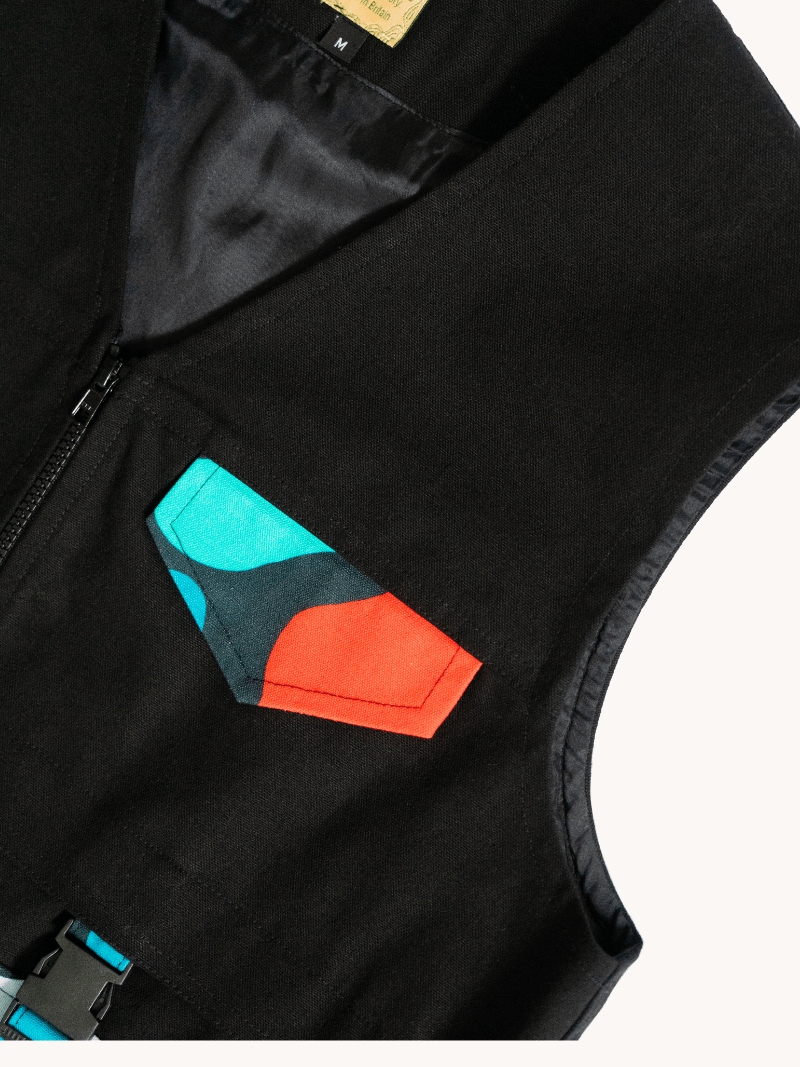100% cotton vestĀ with African print pocketĀ