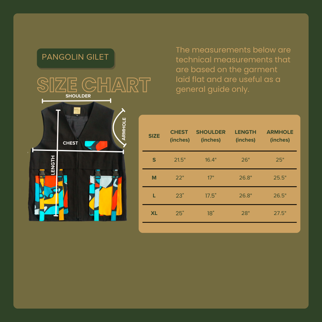 Constructed with a vibrant and fun colourway, this vest serves as a powerful tool for sparking conversations and educating others. It embodies authenticity and adds a playful touch to your overall look. Step out in style, make a statement, and join the movement to protect and preserve the pangolin.